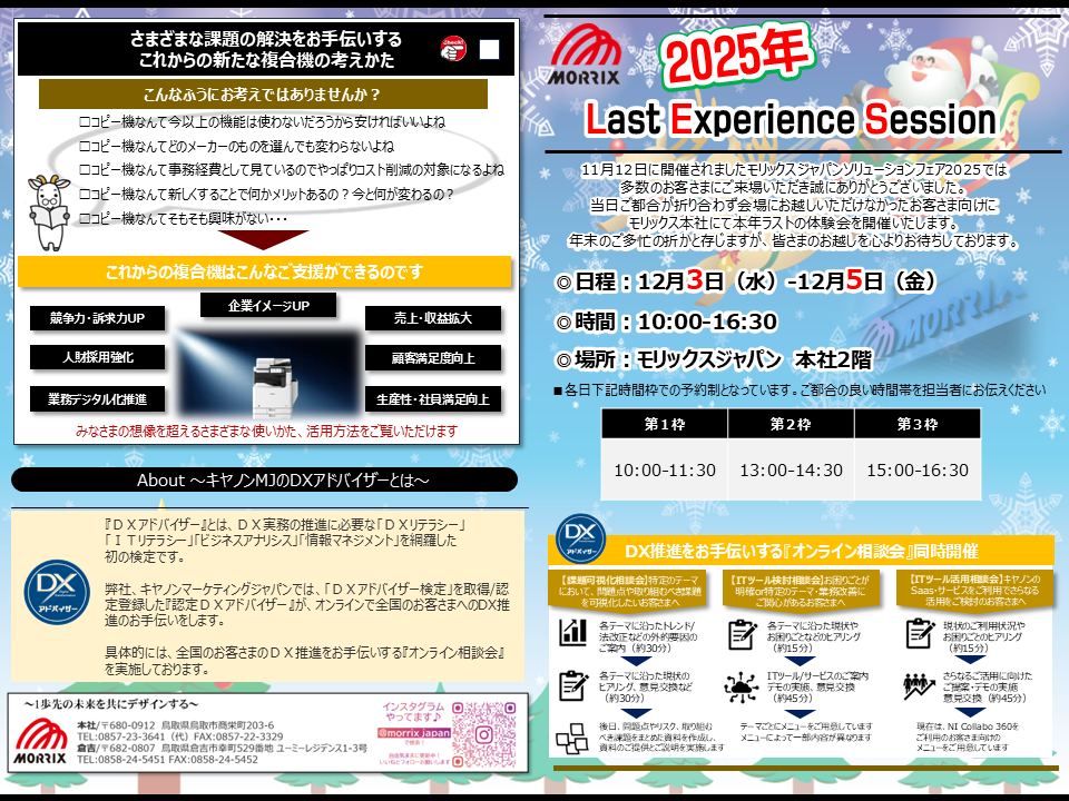お客様に寄り添った課題解決に向けて、改正電子帳簿保存法への対応や業務課題の改善、昨今とくに関心度が高まっていますセキュリティ、売上拡大や企業ブランドイメージ向上に焦点をあてた内容となっております。